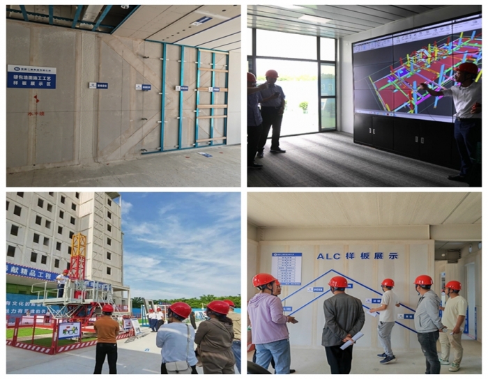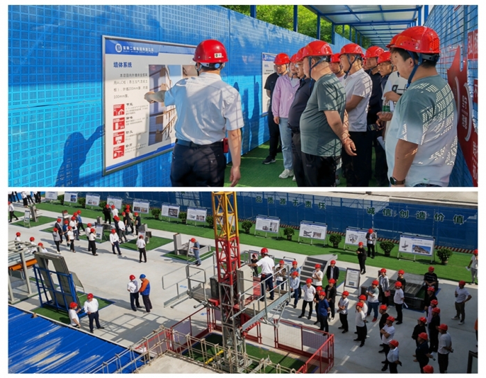 觀摩現場以視頻、展板、實體、樣板等多方位形式,對綠色建造、智能建造、關鍵施工技術共計10余項創(chuàng)新技術進行集中展示,全面展示了裝配式鋼結構體系、綠色建筑材料的應用、文明施工管理現代化模式。