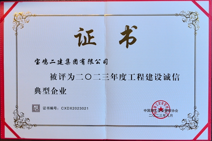 2023年度工程建設(shè)誠信典型企業(yè)