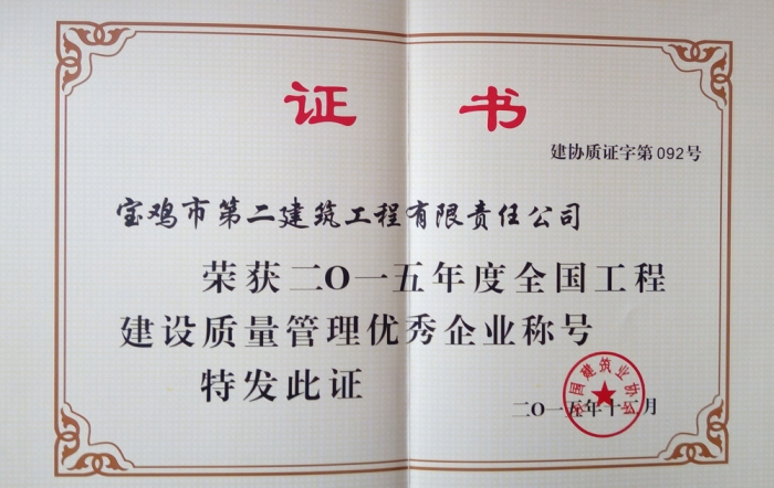 2015年度全國工程建設質量管理優(yōu)秀企業(yè)